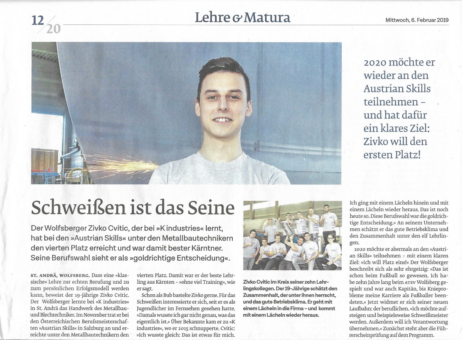 Der K industries Metallbautechniklehrling Zivko Cvitic erreichte bei den "Austrian Skills" den hervorragendes vierten Platz.